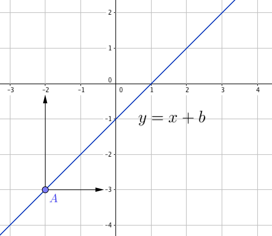 Подставим координаты точки \(\displaystyle A(\color{blue}{ -2};\, \color{green}{ -3})\) в уравнение прямой \(\displaystyle y=x+b\,{\small :}\)
