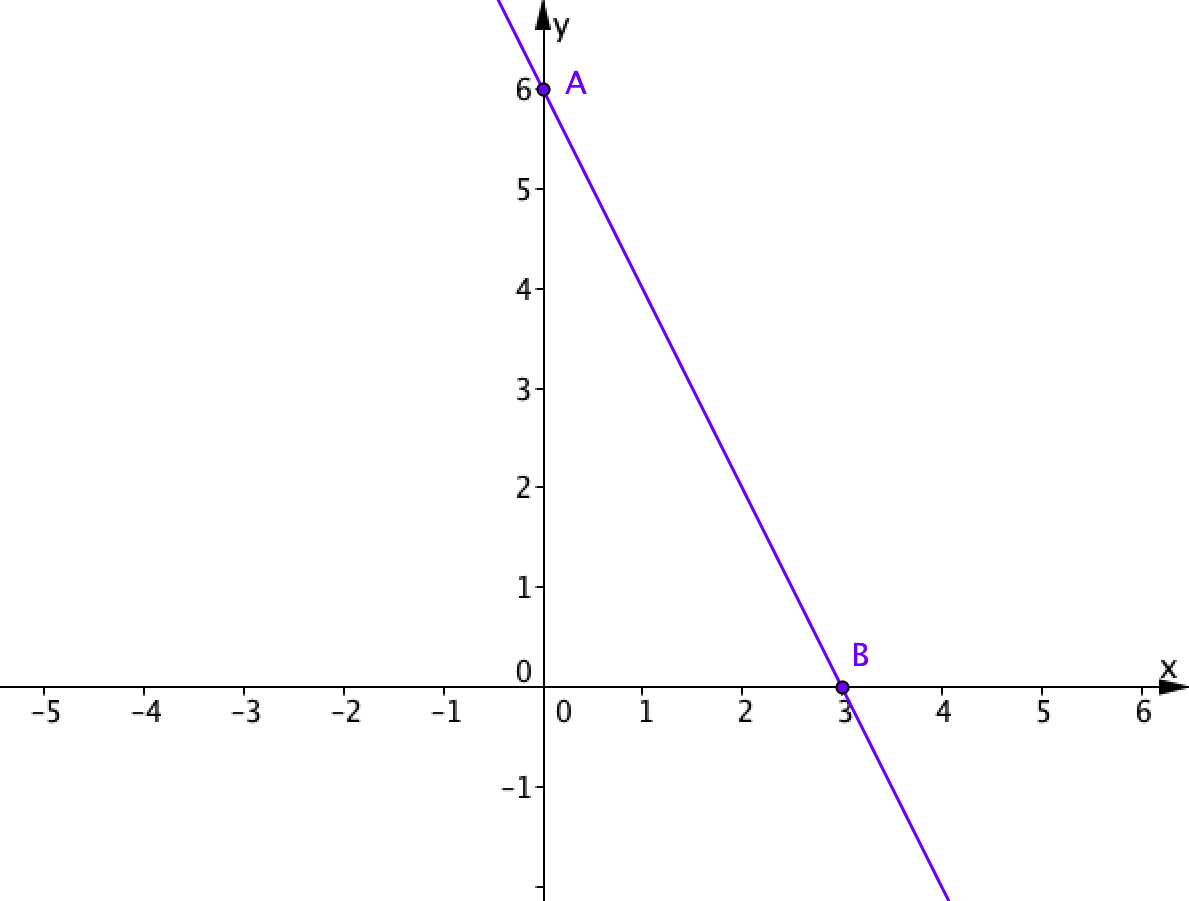 Найдите уравнение прямой, проходящей через точки \(\displaystyle A(0;\, 6)\) и \(\displaystyle B(3;\, 0){\small .}\)