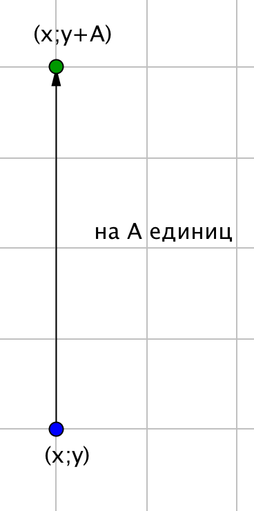 Если некоторую точку с координатами \(\displaystyle (x\,; y\,)\) поднять на \(\displaystyle \rm A\) единиц вверх, то получим точку с координатами \(\displaystyle (x\,; y+{\rm A}\,){\small :}\)
