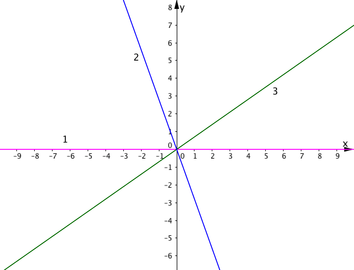 Выберите график линейной функции \(\displaystyle y=kx\) с положительным коэффициентом \(\displaystyle k>0{\small :} \)