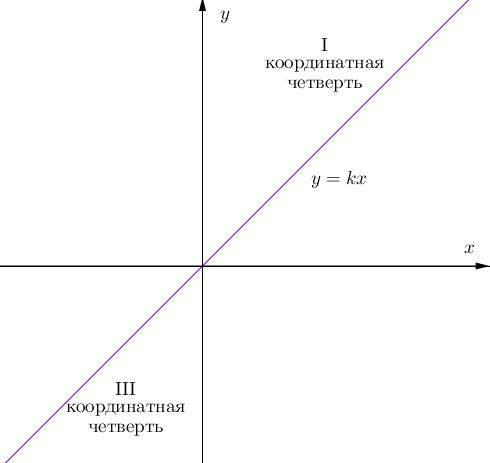 Прямая \(\displaystyle y=kx \) лежит в \(\displaystyle \rm I \) и \(\displaystyle \rm III \) координатных четвертях: