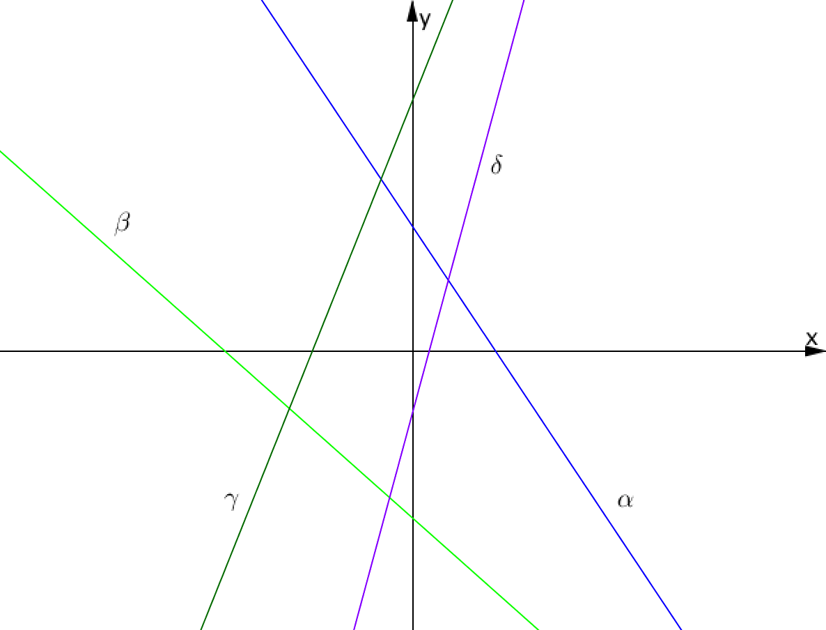 Значит, мы должны выбрать на рисунке такую прямую, у которой \(\displaystyle k<0 \) и \(\displaystyle b<0{\small . } \)