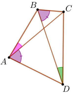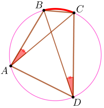 Значит, точки \(\displaystyle A{\small,}\,B{\small,}\,C{\small,}\,D\) лежат на одной окружности.