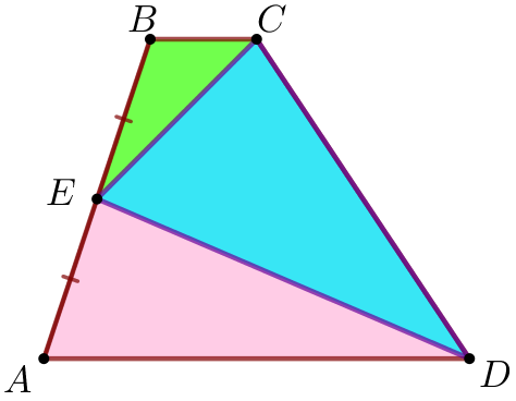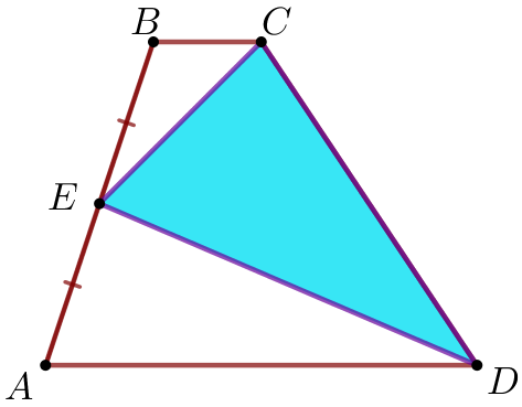 ![]() | \(\displaystyle ABCD\) – трапеция; точка \(\displaystyle E\) – середина стороны \(\displaystyle AB{\small,}\) то есть \(\displaystyle AE=BE{\small.}\)