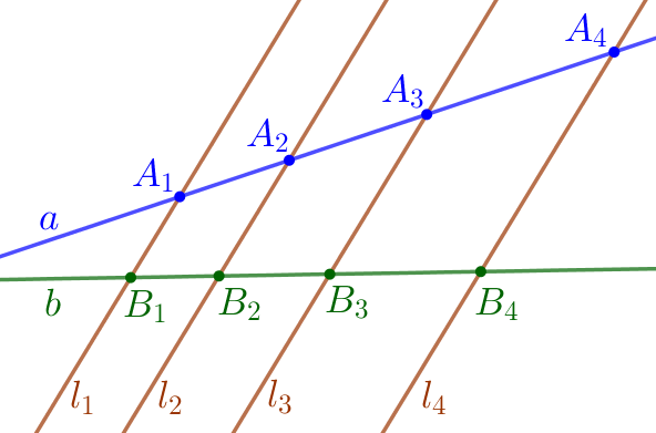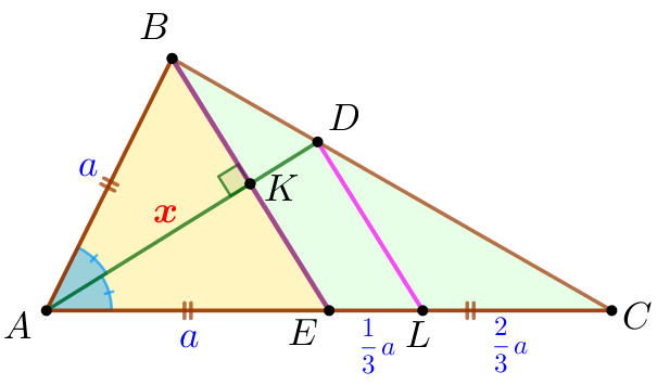 \(\displaystyle \frac{EL}{LC}=\frac{AB}{AC}= \frac{a}{2 \cdot a}=\frac{1}{2}{\small.}\\ \)