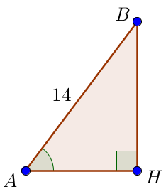 Нам известны \(\displaystyle \sin \angle BAH=\frac{2\sqrt{10}}{7}\) и \(\displaystyle AB=14\small.\) Так как