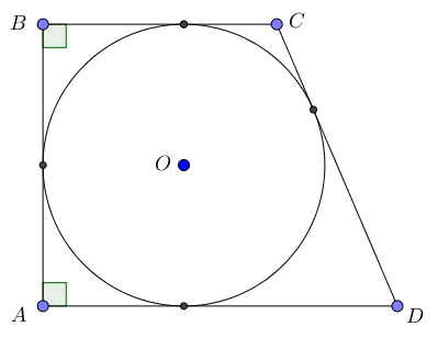 Пусть \(\displaystyle ABCD\) – описанная прямоугольная трапеция с периметром \(\displaystyle 22\) и боковыми сторонами \(\displaystyle AB\) и \(\displaystyle CD=7\small,\) \(\displaystyle CD>AB\small.\)