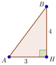 По теореме Пифагора \(\displaystyle AB^2=BH^2+AH^2 \small.\) Значит, \(\displaystyle AB^2=4^2+3^2=16+9=25=5^2 \small.\) Поскольку длина отрезка положительна, то \(\displaystyle AB=5 \small.\) | ![]() |