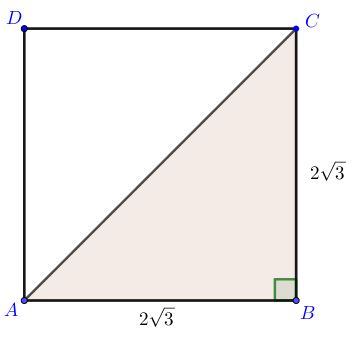 Найдем длину \(\displaystyle AC\) из прямоугольного равнобедренного треугольника \(\displaystyle ABC\) с катетами длины \(\displaystyle 2\sqrt3{\small .}\)