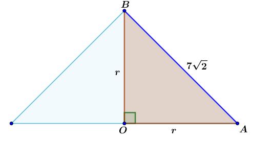 \(\displaystyle \left(7\sqrt2\right)^2=r^2+r^2\small,\)