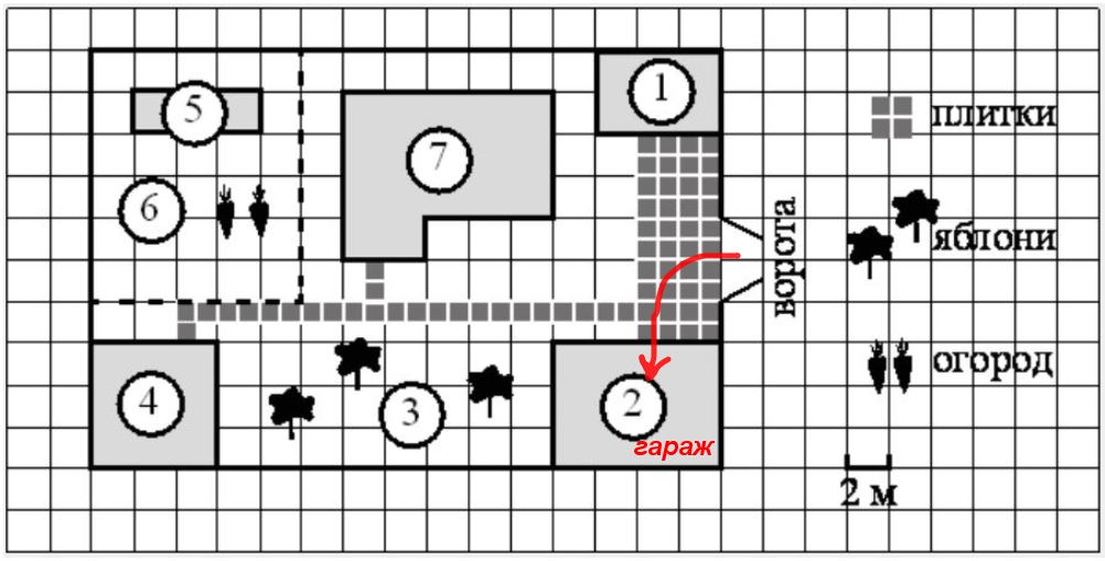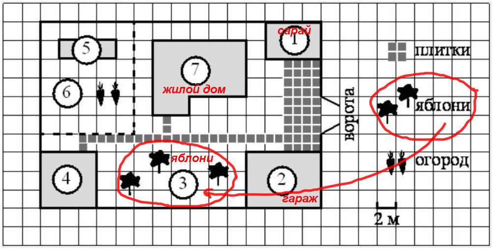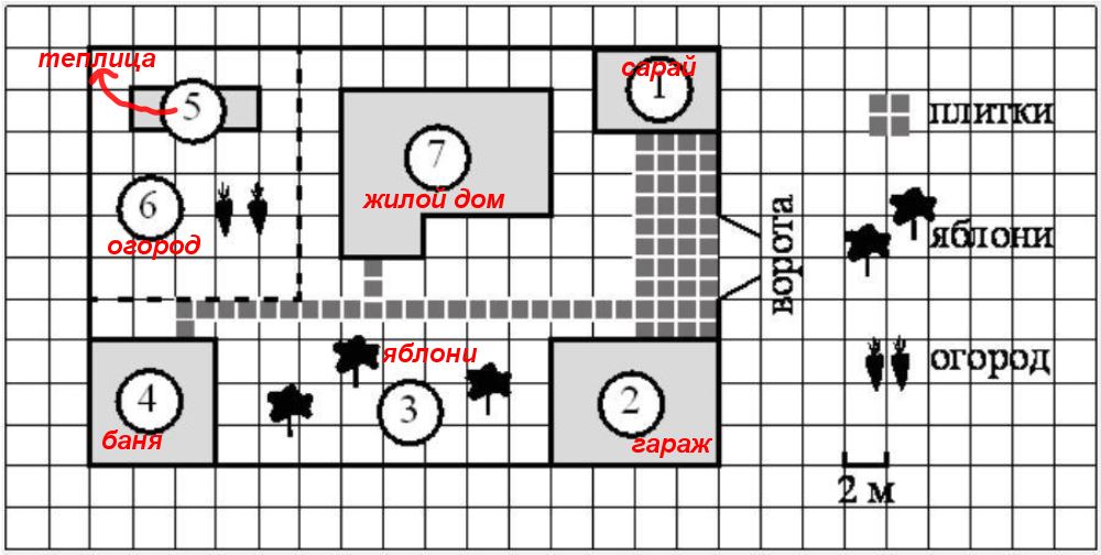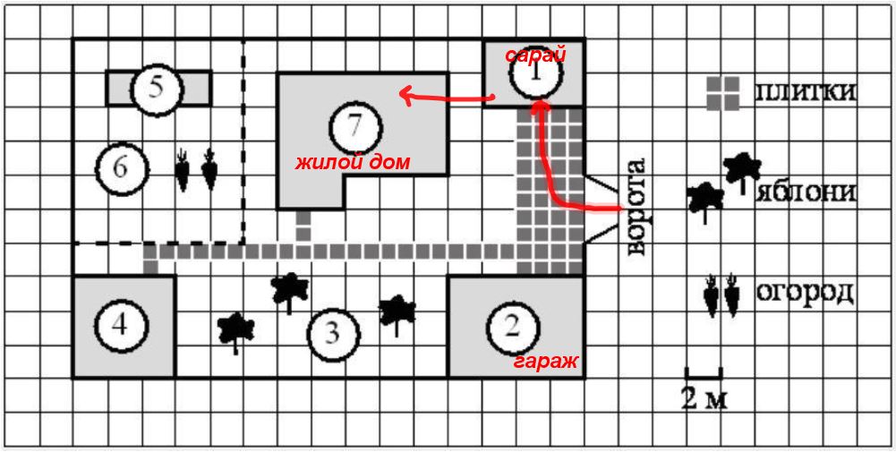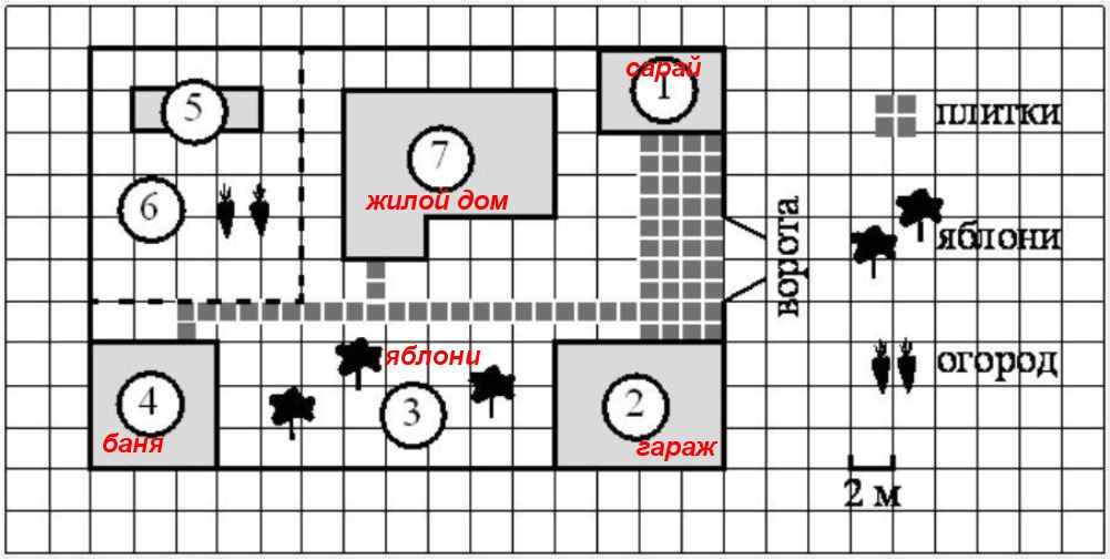 Значит цифрой \(\displaystyle \red6\) на плане отмечен огород (это соответствует и условным обозначениям).