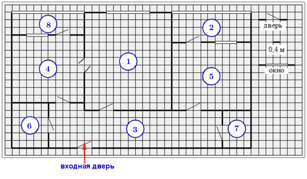 Определим, где находится входная дверь: во внешней стене квартиры имеется единственная дверь – значит, она входная.