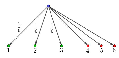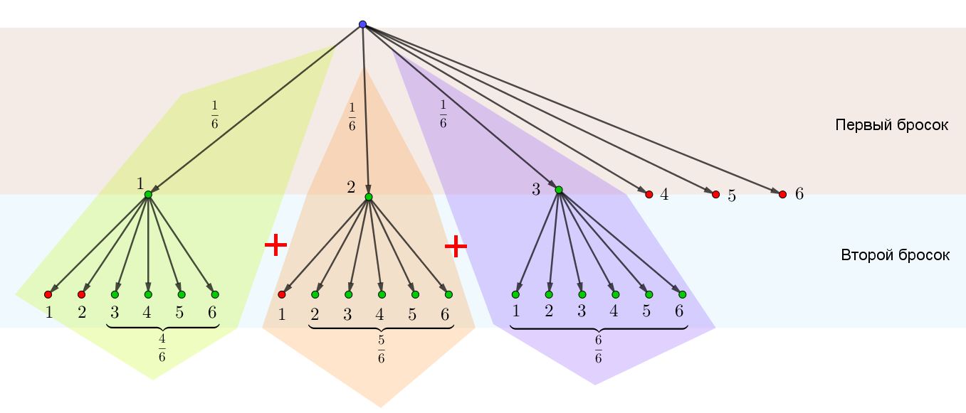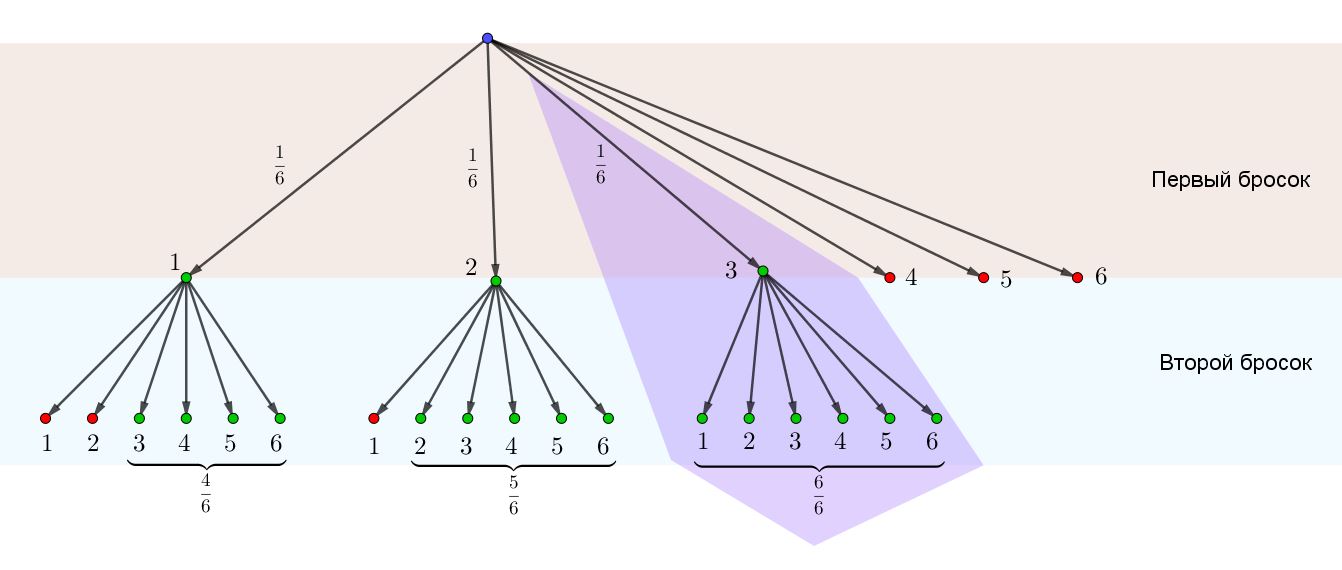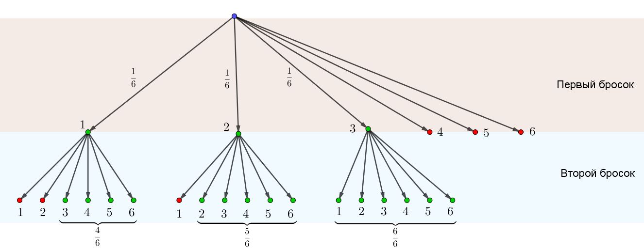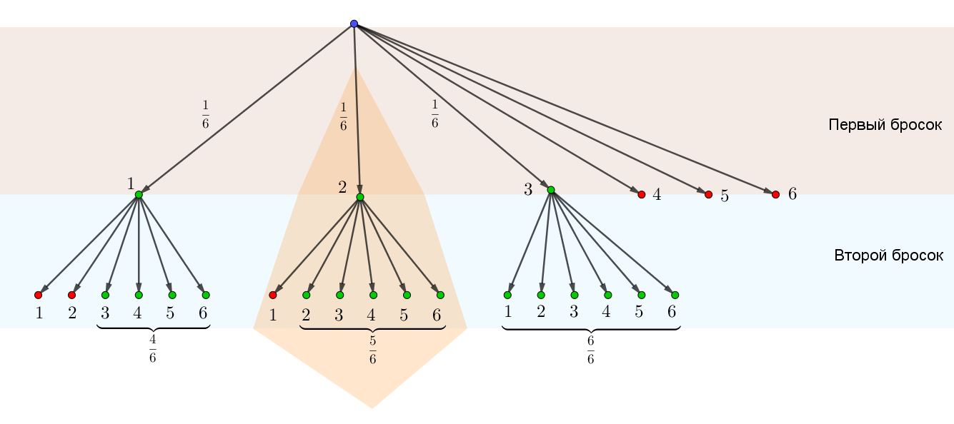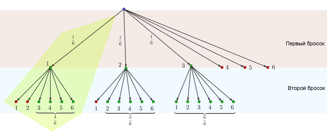 Начнём строить граф возможных исходов, учитывая результаты первого броска кости.