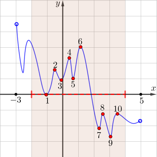 Получаем \(\displaystyle 10\) точек экстремума на отрезке \(\displaystyle [-2;\, 4]{\small.}\)