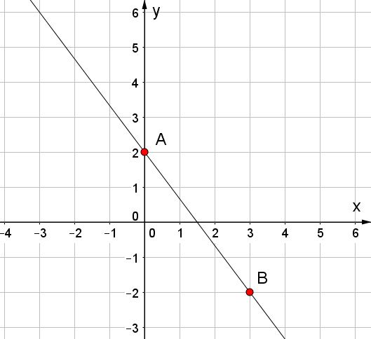 Найдите уравнение прямой, проходящей через точки \(\displaystyle A(0;2)\) и \(\displaystyle B(3;\, -2){\small :}\)
