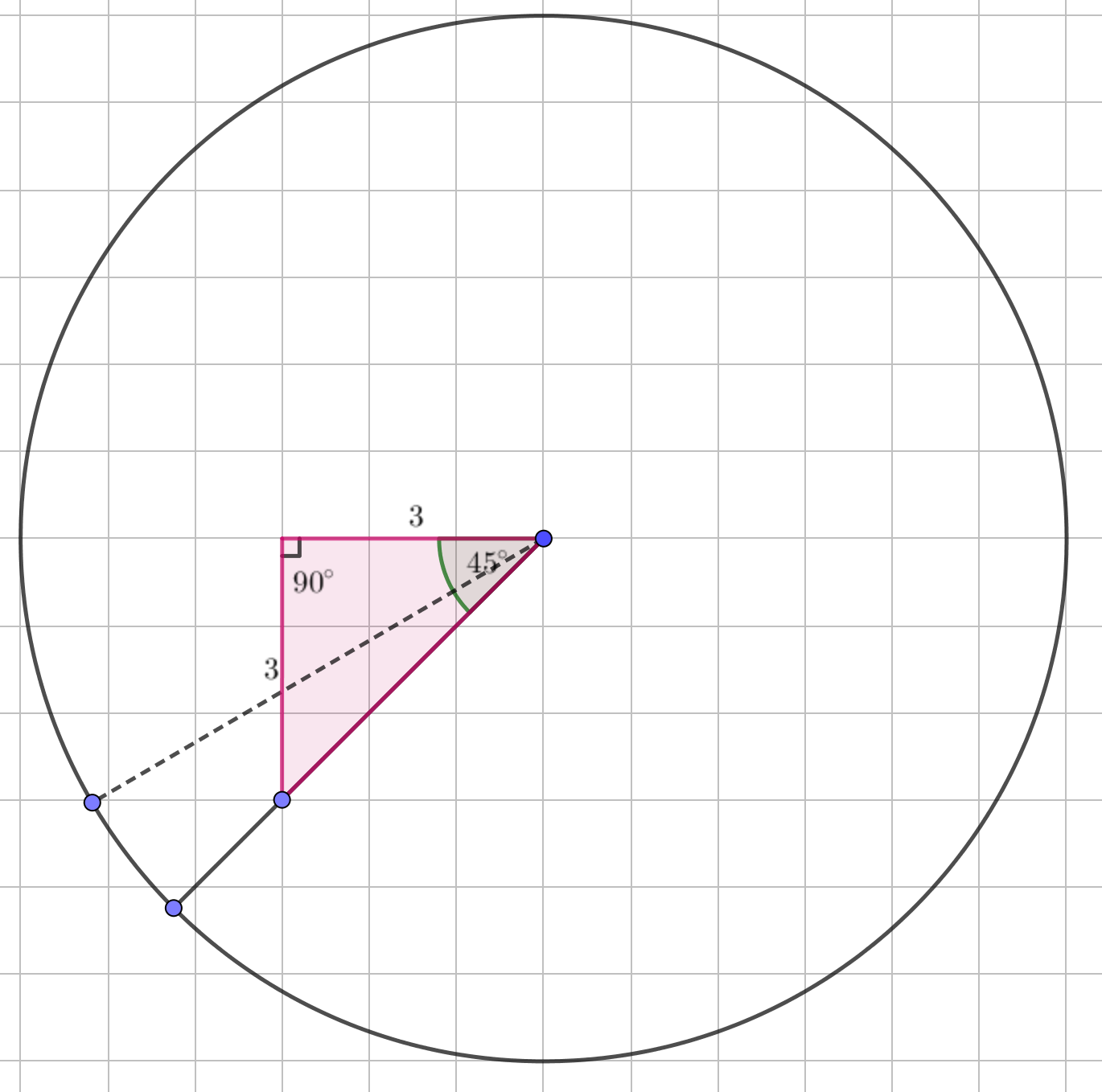 Построим дополнительный (зеленый) прямоугольный треугольник на второй стороне угла: