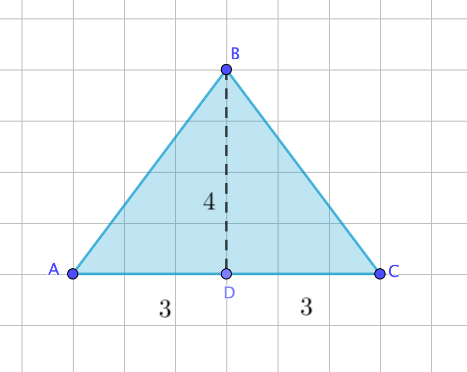 Проведем высоту к основанию \(\displaystyle AB{\small .}\) Получаем два прямоугольных треугольника \(\displaystyle ABD\) и \(\displaystyle BDC\) с катетами \(\displaystyle 3\) и \(\displaystyle 4{\small :}\)