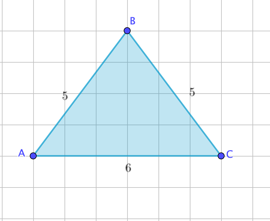 \(\displaystyle AB+BC+CA=5+5+6=16{\small .}\)