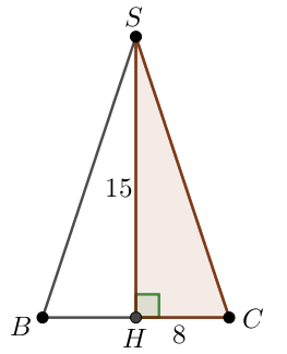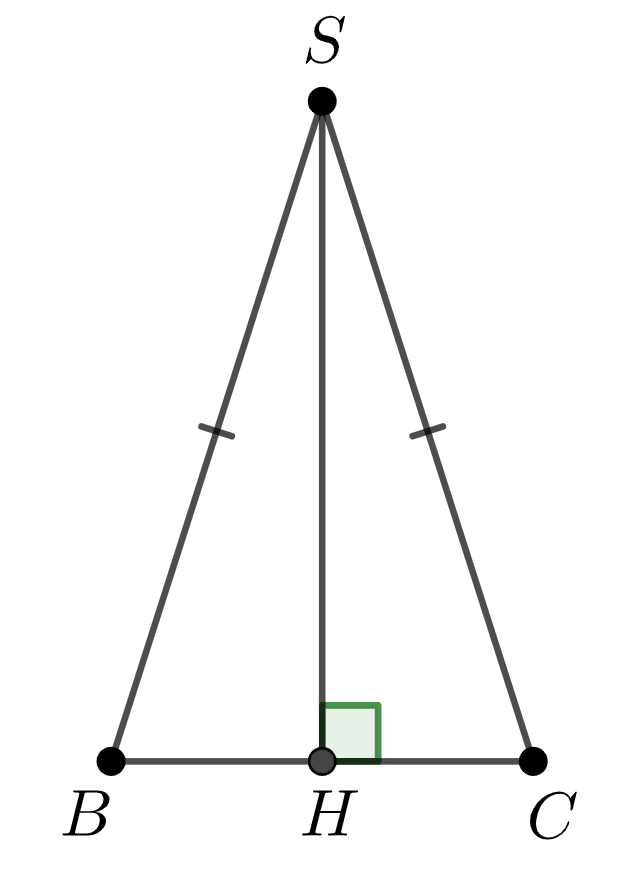 Отрезок \(\displaystyle SH\) является высотой равнобедренного треугольника \(\displaystyle SBC{\small ,}\) проведенной к основанию \(\displaystyle BC{\small .}\)