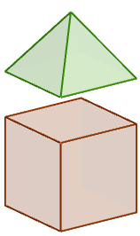 | Куб и пирамиду склеили так, что их основания – квадраты совпали. Таким образом, получили многогранник: |