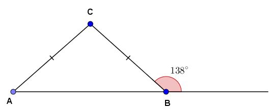 В треугольнике \(\displaystyle ABC\) стороны \(\displaystyle AC\) и \(\displaystyle BC\) равны. Внешний угол при вершине \(\displaystyle B\) равен \(\displaystyle 138^{\circ}{\small .}\)