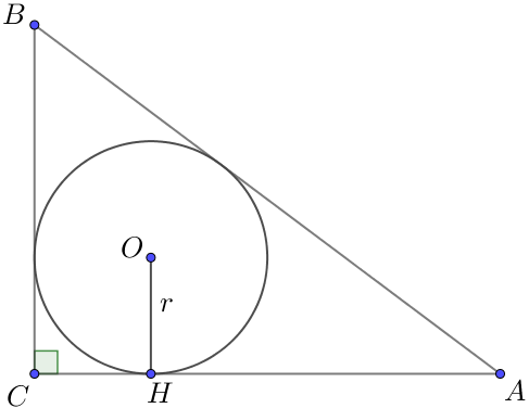 В прямоугольном треугольнике \(\displaystyle ABC\) найдем площадь и полупериметр: