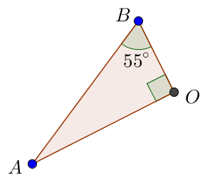 \(\displaystyle \angle BAO = 180^{\circ}-\angle ABO-\angle AOB=180^{\circ}-55^{\circ}-90^{\circ}=35^{\circ} \small.\)