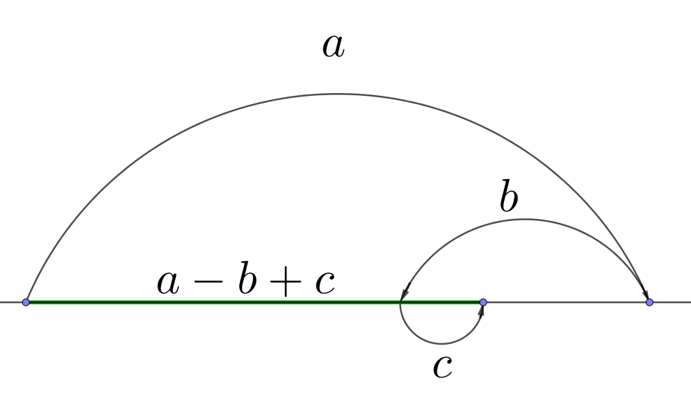 На диаграмме показано построение отрезка длины \(\displaystyle a-b+c{\small .}\)