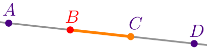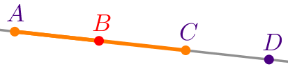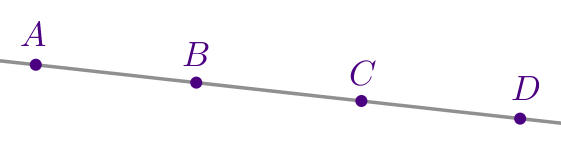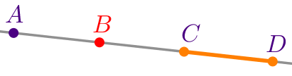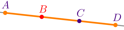 На прямой отмечены точки \(\displaystyle A{\small,}\) \(\displaystyle B{\small,}\) \(\displaystyle C\) и \(\displaystyle D{\small.}\)
