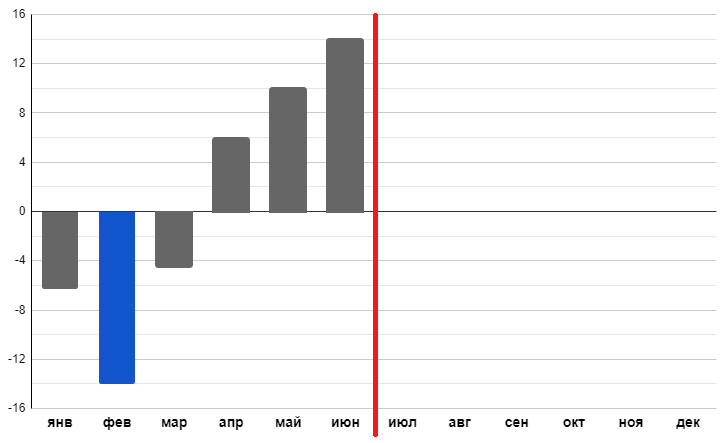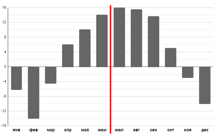 Проведем вертикальную прямую между столбцами, соответствующими июню и июлю: