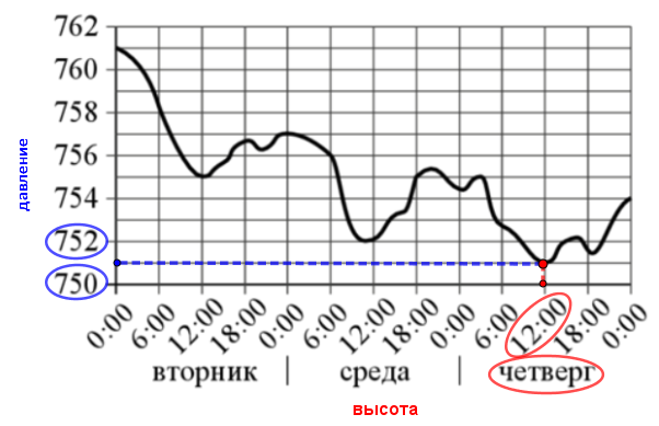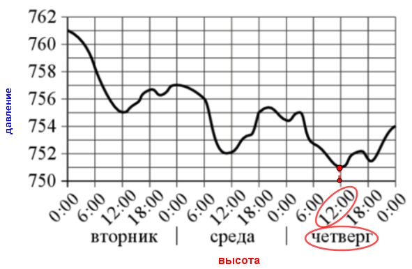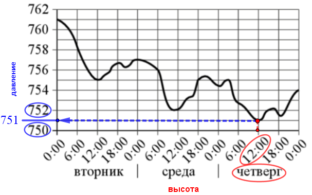 Таким образом, в четверг в \(\displaystyle 12\) часов дня давление равно \(\displaystyle {751}\) мм рт. ст.