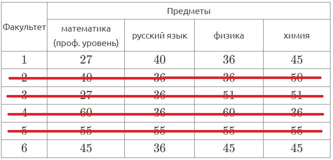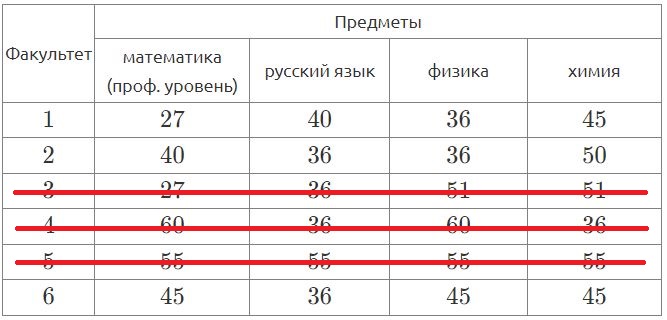 и вычеркивать из таблицы факультеты, на которые нельзя подать документы.