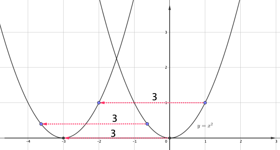 По условию задачи парабола \(\displaystyle y=x^2\) сдвигается на \(\displaystyle 3\) единицы влево вдоль оси \(\displaystyle \rm OX{\small .}\)