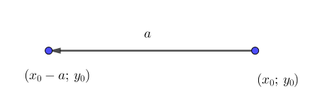 Если некоторую точку с координатами \(\displaystyle (x_0\,; y_0)\) сдвинуть на \(\displaystyle a\) единиц влево вдоль оси \(\displaystyle \rm OX\), то получим точку с координатами \(\displaystyle (x_0- a\,; y_0){\small :}\)