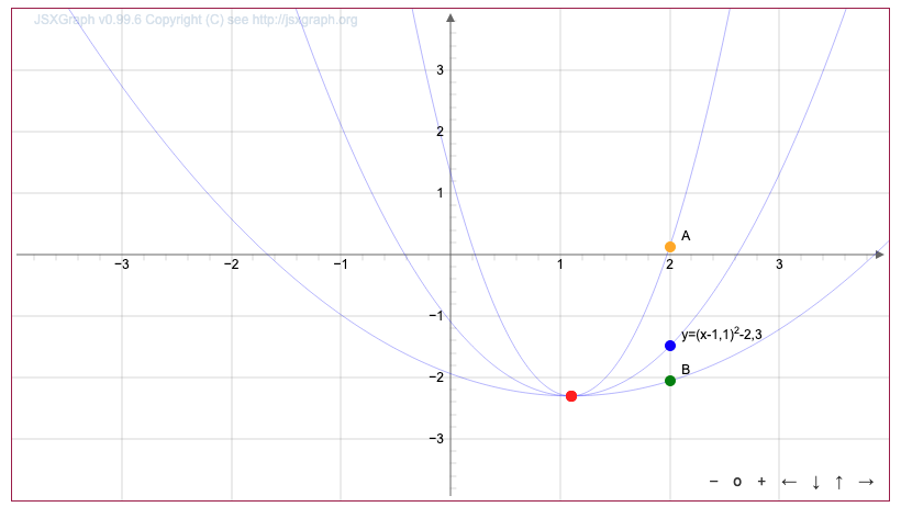 \(\displaystyle y=\color{red}{1}\cdot (x-1{,}1)^2-2{,}3{\small .}\)