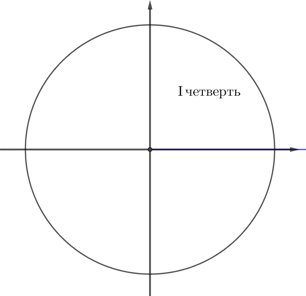 При вращении в положительном направлении луч проходит сначала первую четверть, затем вторую, третью и наконец четвертую четверть.