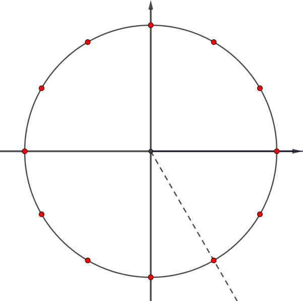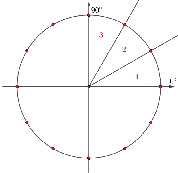 Красные точки делят первую четверть на \(\displaystyle 3\) равных части: