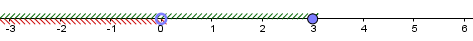- либо \(\displaystyle x-3\le 0{ \small ,}\, x< 0\) – числитель неположителен, знаменатель отрицателен.