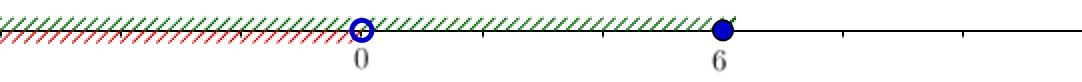 - либо \(\displaystyle x-6\le 0{ \small ,}\, x< 0\) – числитель неположителен, знаменатель отрицателен.