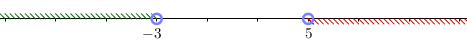 - либо \(\displaystyle x-5>0{ \small ,}\, x+3<0\) – первый множитель положительный, второй отрицательный;