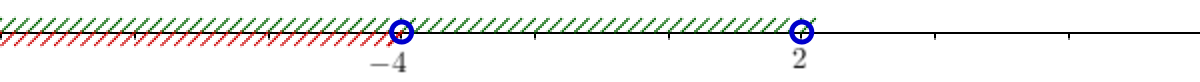 - либо \(\displaystyle x-2<0{ \small ,}\, x+4<0\) – оба множителя меньше нуля.