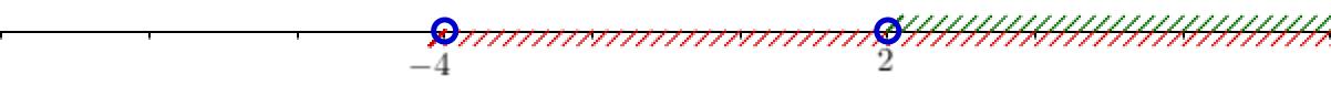 - либо \(\displaystyle x-2>0{ \small ,}\, x+4>0\) – оба множителя больше нуля;