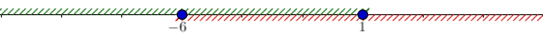• либо \(\displaystyle x-1\ge 0{ \small ,}\, x+6\le 0\) – первый множитель неотрицательный, второй неположительный;