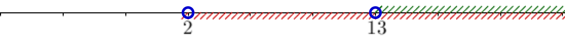 - либо \(\displaystyle t-13>0{ \small ,}\, t-2>0\) – оба множителя положительны;
