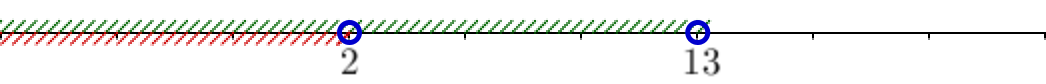 Все решения неравенства \(\displaystyle (t-13)(t-2)>0\) получаются, когда