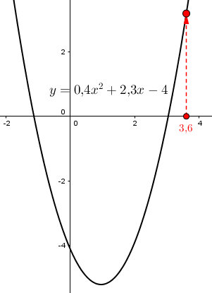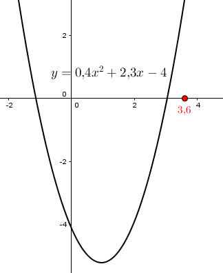 \(\displaystyle 0{,}4\cdot 3{,}6^2+2{,}3\cdot 3{,}6-4\)\(\displaystyle 0\)