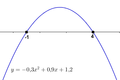 Нам известен график график параболы \(\displaystyle y=-0{,}3x^2 +0{,}9x +1{,}2{\small.}\)