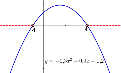 Известен график параболы \(\displaystyle y=-0{,}3x^2 +0{,}9x +1{,}2{\small .}\)