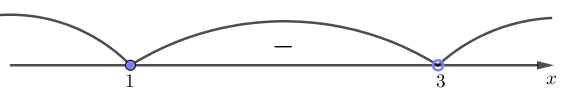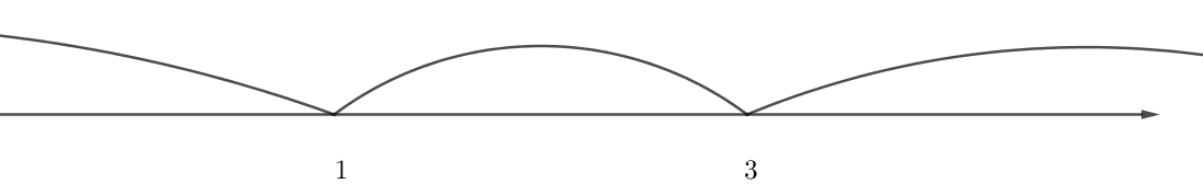 Для интервала \(\displaystyle (1;3)\) выберем \(\displaystyle x=2 \in (1;3){\small .}\) Определим знак значения функции в точке \(\displaystyle x=2 { \small :}\)