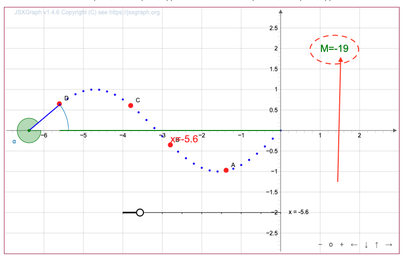 - точку \(\displaystyle C\) в точку \(\displaystyle (-3{,}8;\, \sin(-3{,}8)){\small ,}\) точку \(\displaystyle D\) в точку \(\displaystyle (-5{,}6;\, \sin(-5{,}6)){\small .}\)